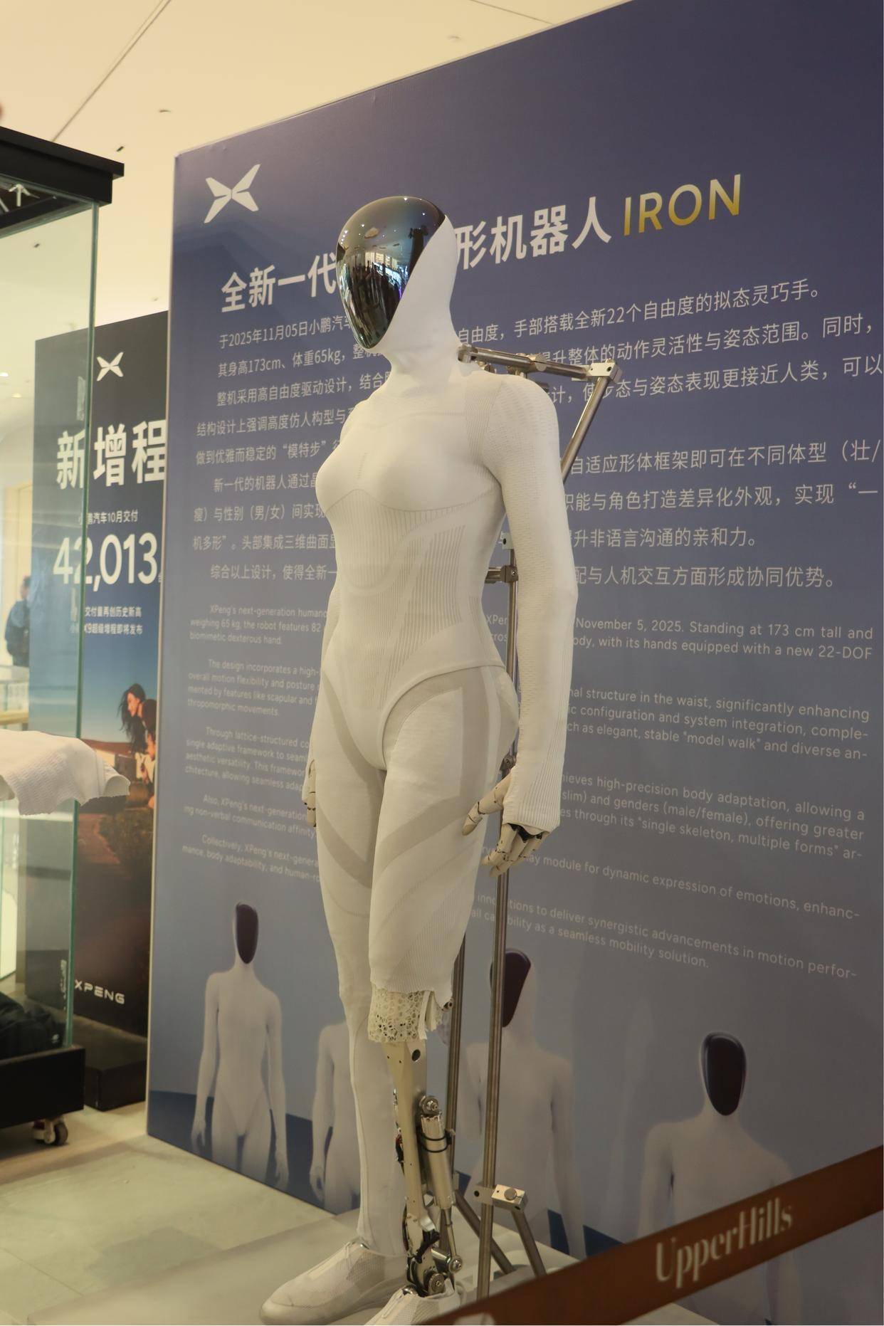 据悉,IRON机器人身高173厘米,体重65公斤,以其高度拟人的形态和灵活的运动能力为核心亮点。它全身拥有82个超高自由度关节,尤其是配备了22个自由度的拟人灵巧手,能够完成精细的抓取和操作任务。此次在深业上城商场L2层西侧中岛区域的展示,吸引了大量科技爱好者、市民及行业人士驻足观看。
